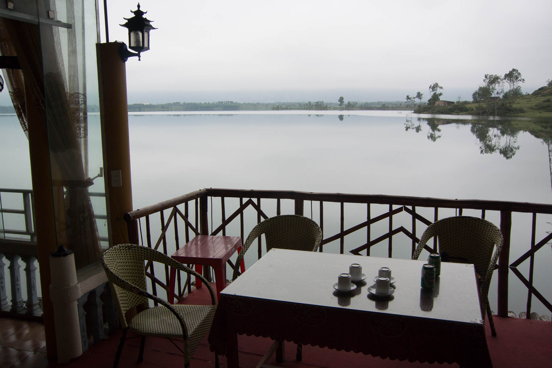 I wanted to get about twenty kms past Ky Anh before stopping, but I came upon this strip of hotels where normally I wouldn’t see so many.  I had been worried a bit as the next major town is too long off.  So I checked into one of them.  It is fairly low keyed and so I didn’t expect much.  When I asked about food the woman took me out and pointed to the back of the parking lot. I entered a lovely restaurant hanging out over a peaceful lake.  Away from the noise of the highway I had a couple of beers in the most peacefully place I have found.  And now I have just had a high end dinner.  I love the pho bo and bun bo and even the eel soup, but something a little different is nice.  And the day has ended without me falling into bed in deep fatigue.  A great day.