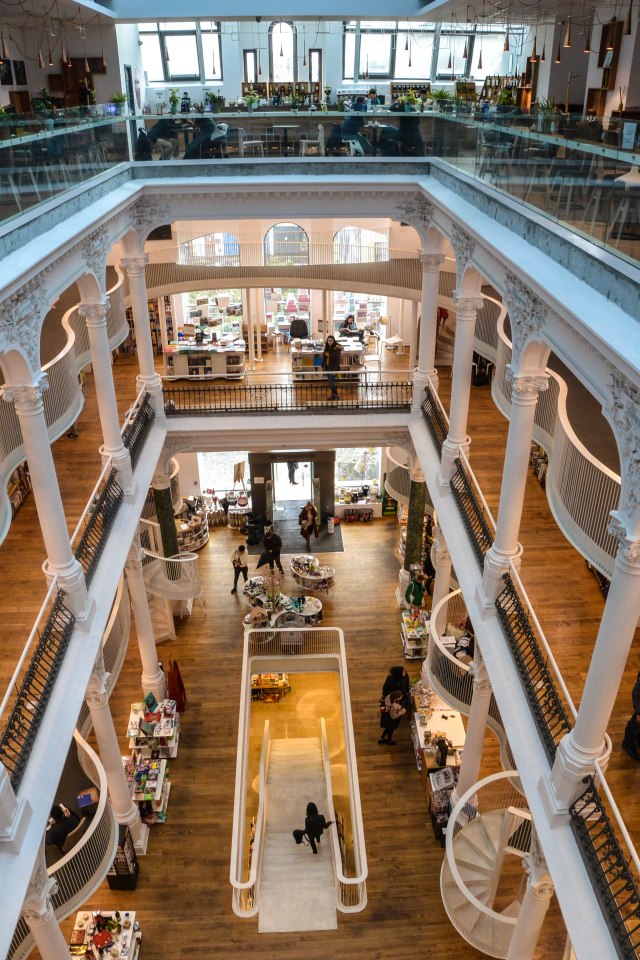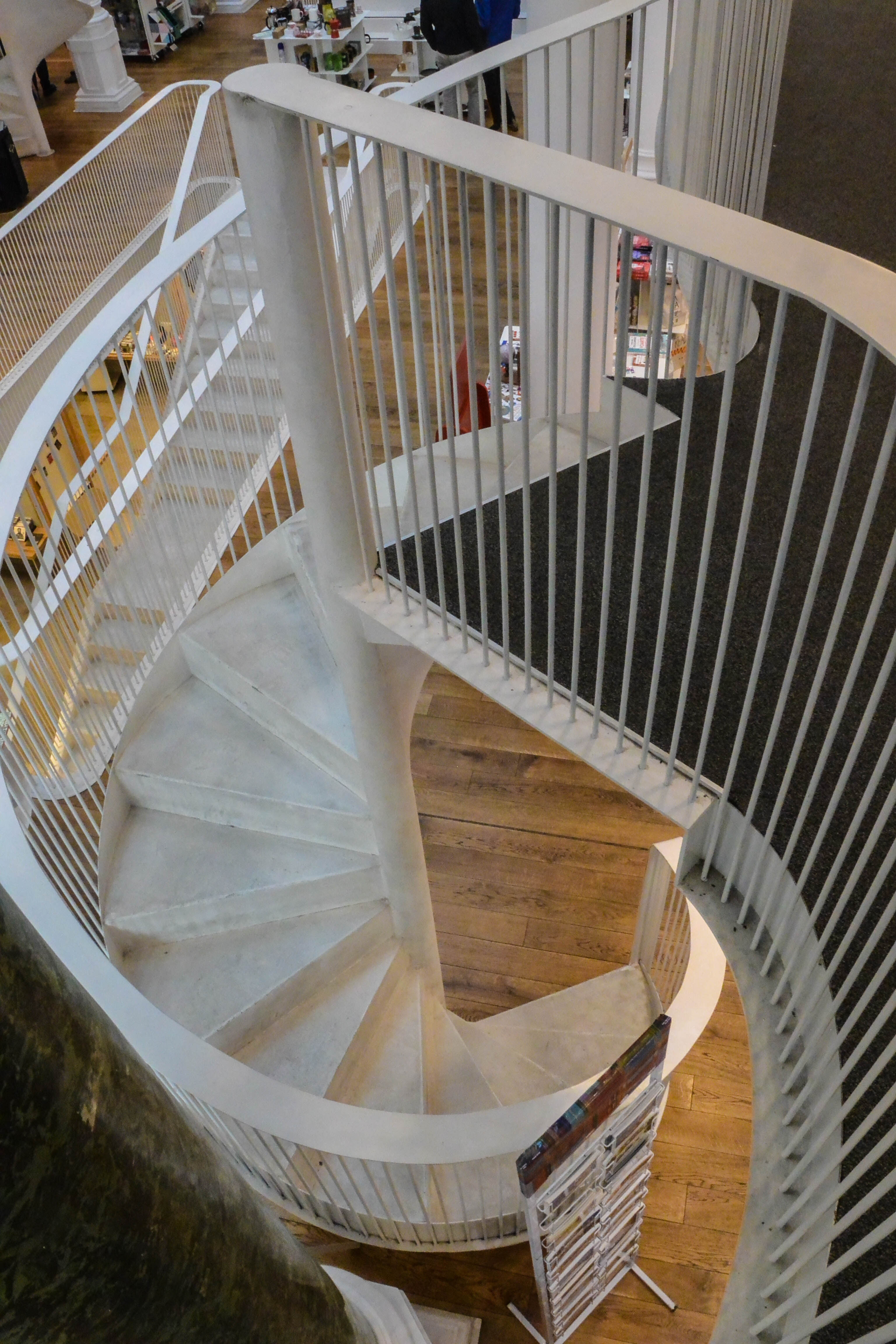 I finished my Sunday with a pleasant hour in one of the most attractive bookstores I have been in. The inside of an old building on one of the walking strips has been reworked to open up the four floors with books on the walls and the inside left clear as an atrium, with curving stairs connecting the floors.