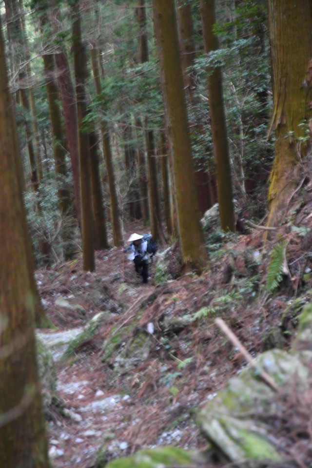 On my third walking day I had about an hour’s walk to get to Temple 11. It is situated at the base of a range of mountains, this one to be crossed. Unfortunately this hour had its price later in the day. Temple 12, Shosanji, is the first Nancho temple. The route to the temple is henro-korogashi. Literally..where a pilgrim falls down. For me it was a 7 hour walk crossing three 800 m passes. I also managed to lose the way at the end resulting in an extra 5 km on a road. Nanchos are mountain top temples so I had another hour of stumbling down from Shosanji to my ryokan. I was quitting in a number of ways. I hadn’t fallen down but I was very close to it … henro-korogashi. I’m sure the ryokan guy assumed I was done.