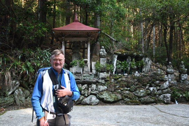 Leaving Temple 10 I now turned and headed to the mountains on the other side of the valley. My accommodation was in a ryokan somewhat off of the route. I crossed the Yoshino River and took a Metro 2 stops where I was helped to find my ryokan. It was very basic but the practice was consistent with all that I have used. When I come in they get the tub running. They take me to my tatami matted room, get the electric heater running and point out the tea and snacks. By this time I have begun to stiffen and may have to just fall on the floor to get my clothes off. In the beginning as the day progressed I got slower, more awkward and lost any facility with stairs. I don the bathrobe (I know it has a proper name) and head for the bath room. First a significant washing is required. I just do it standing with the hand held hose. But if you are sharing your bath with another he will sit on a small stool and scrub with copious amounts of soap and then rinse it all away to be repeated at least three times. Finally the highlight of the day. Into the tub. With some luck you can almost submerge and you can stay as long as you like. Meals are set and communal. Lots of fish. Most of the 8 or 10 dishes that arrive on a tray are cold but always hot miso and rice. It works for me. Each night I think I won’t be able to get under way in the morning but I do.
