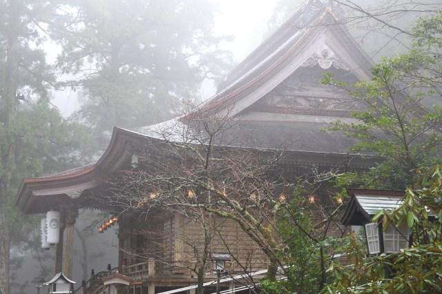 My sixth day was to visit temples 20 and 21, the 2nd and 3rd of the six nancho (mountain top) temples. This means some more henro-korogashi segments. While it rained all day I quite enjoyed the whole day. A couple hours on a moderately busy road was rewarded by five hours of trail up to and down from the two nanchos. At the temples the rain and fog swirled among the buildings enveloping the lonely Buddha’s and Kobo Daishis. Only the odd aruki-henro would come by to pay their respects on a day like this.