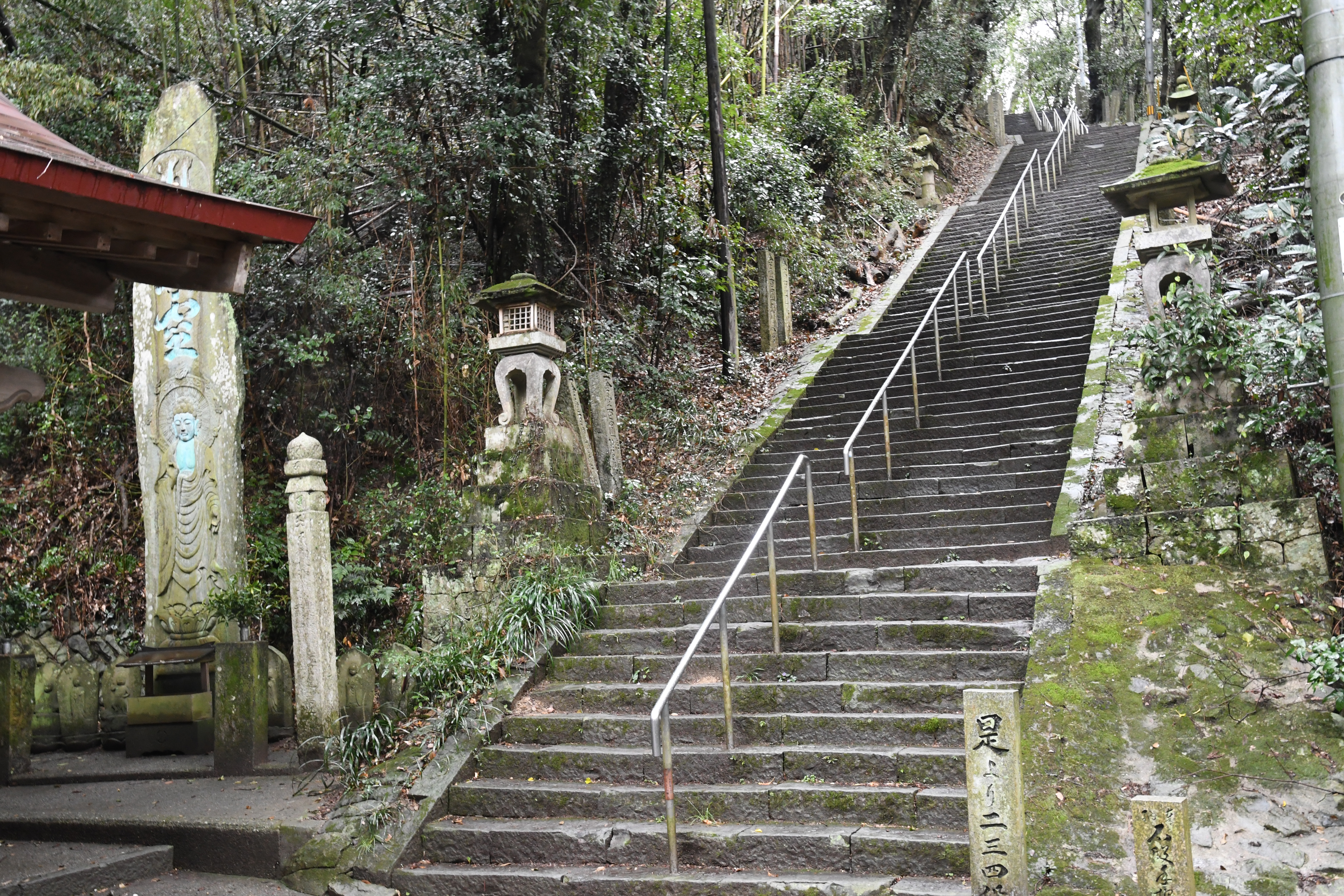 On my third walking day I had about an hour’s walk to get to Temple 11. It is situated at the base of a range of mountains, this one to be crossed. Unfortunately this hour had its price later in the day. Temple 12, Shosanji, is the first Nancho temple. The route to the temple is henro-korogashi. Literally..where a pilgrim falls down. For me it was a 7 hour walk crossing three 800 m passes. I also managed to lose the way at the end resulting in an extra 5 km on a road. Nanchos are mountain top temples so I had another hour of stumbling down from Shosanji to my ryokan. I was quitting in a number of ways. I hadn’t fallen down but I was very close to it … henro-korogashi. I’m sure the ryokan guy assumed I was done.