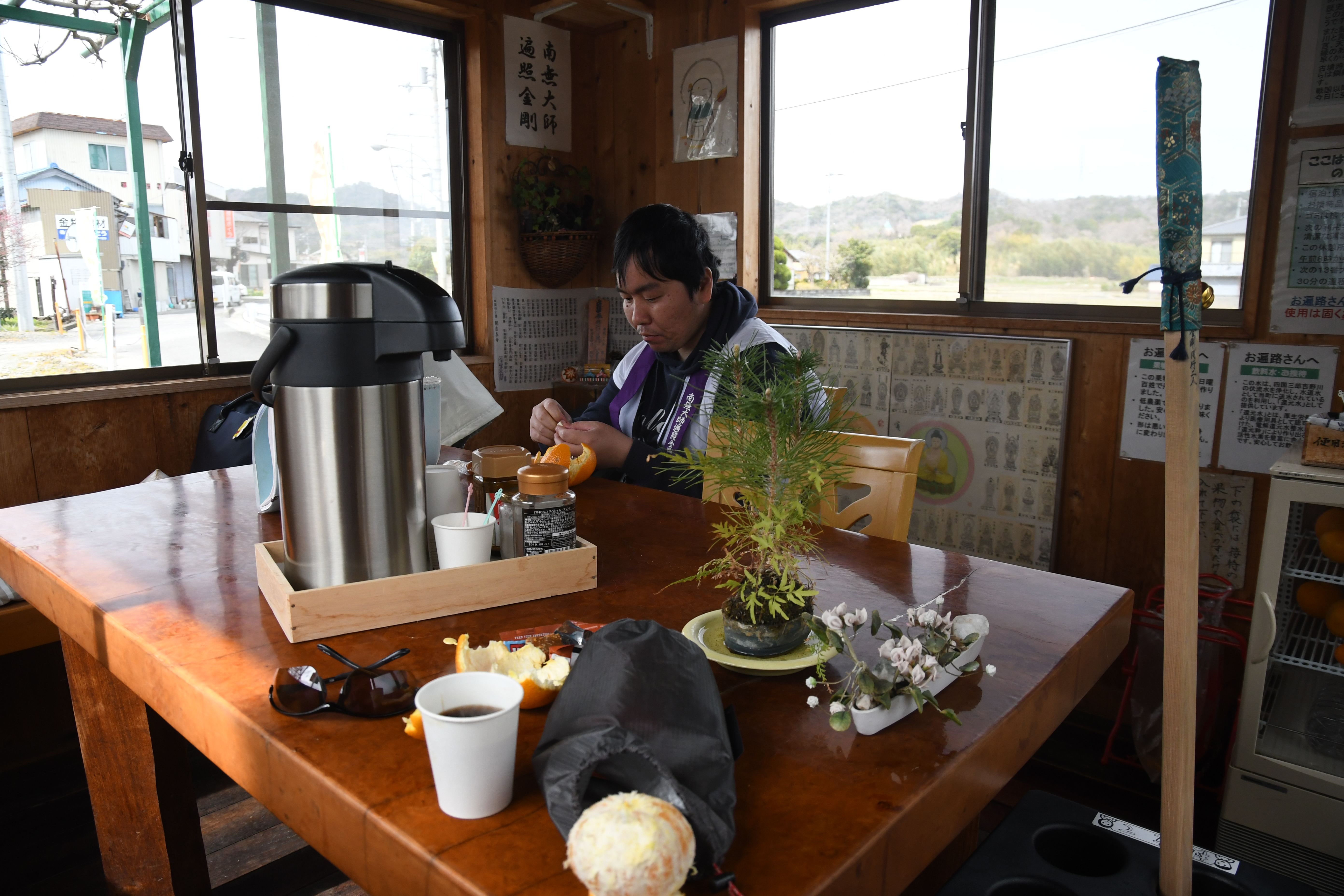 I was going pretty well and so I would be able to make it to 23 but it wasn’t something I was keen on. I walked steadily for the next few hours on a mix of roads and trails with quite a bit of up and down and seem to have no trouble finding my way but then I saw a road sign Tainohama Beach which is where Yuki is. Somehow I missed the direct route to Temple 23 so now I would have to try to find a place in Yuki. I walked into town and a friendly woman asked if she could help and I indicated I needed a place. She walked me to a place that let me in. So I did a lot of worry for nothing again. I was safely in at 3:00 which is kind of ideal these days.