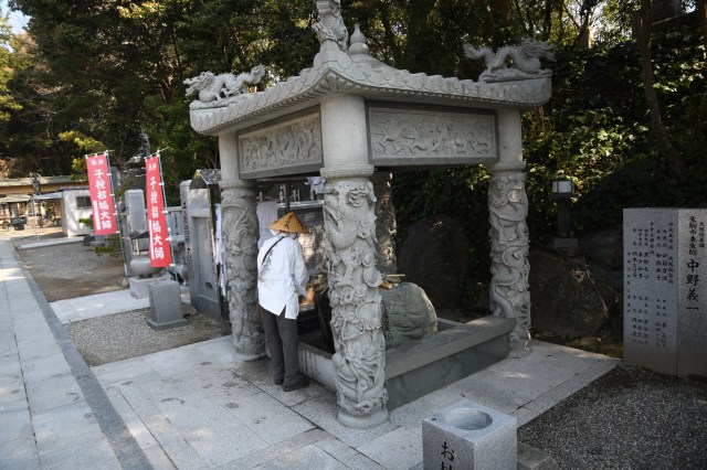 3. A water well and dippers are used to purify yourself by rinsing your hands and mouth.