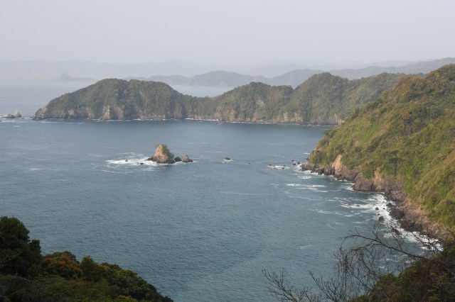 I now had to head back up the hill that I had already gone up an hour earlier. Past the point where a woman jumped out of a car to give me a 500 yen ossetai, past the turnoff to the resort and on along the lovely ridgetop road that I would walk for the next day. No matter how many mistakes it seems I am too early in the day for where I expected to be. I had close to an hour stop at a little food side vendor at a scenic lookout and then just before the turn off down to the fishing village where I had booked a place a car was waiting. It was my minshuku hostess. She was afraid I would miss the turn. Once again I was finished walking at 1:00. After walking around the village for a while my hostess started filling the big tub for my bath and demanded I get my clothes off so she could wash them.
