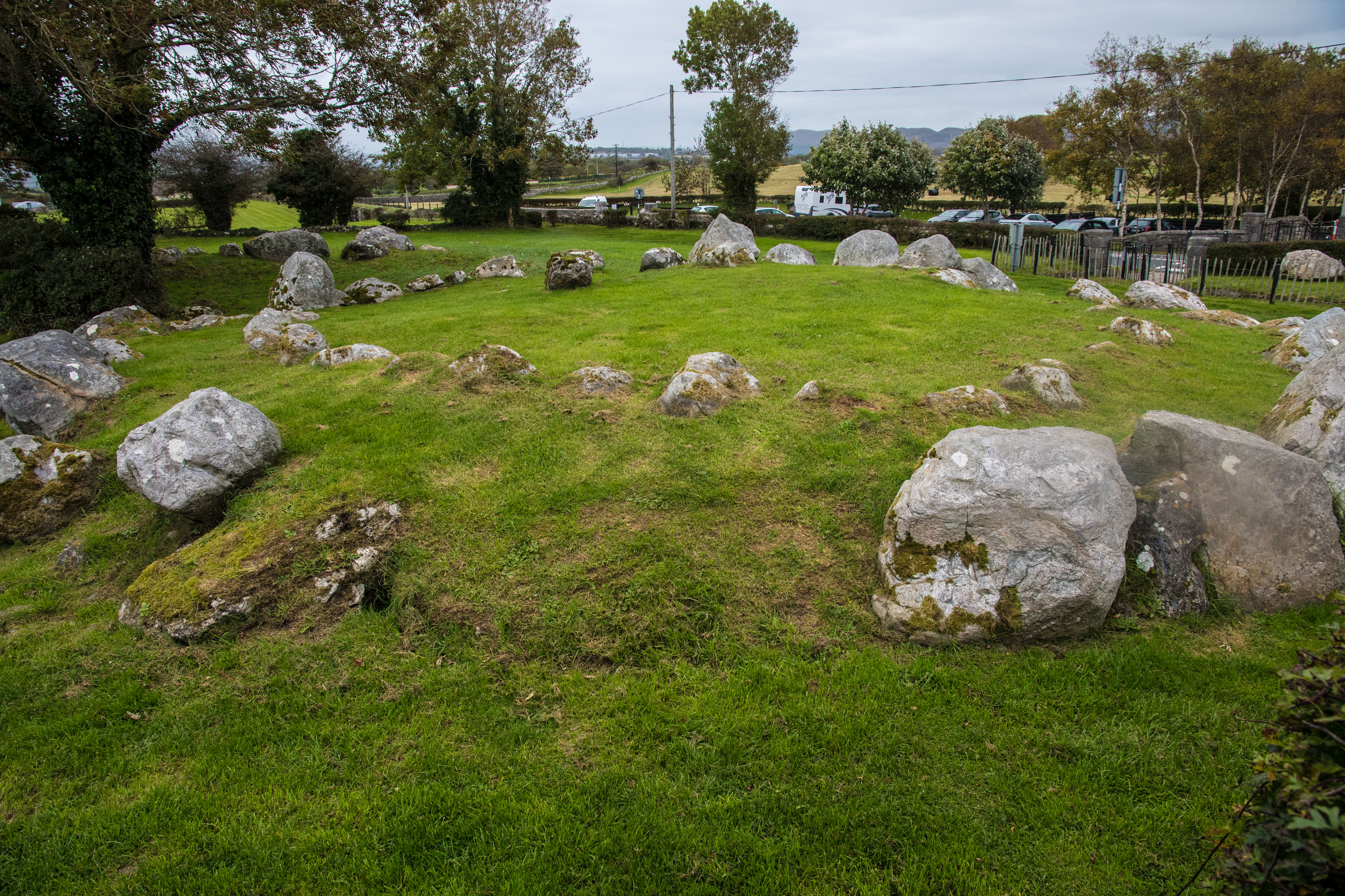A little later as I neared Sligo I turned west off of my route into the wind for a while. I was heading to Carrowmore Megalithic Cemetery.  A lovely farmyard type setting for a number of Dolmen, burial mounds and stone circles. They date from about 3000 BC.  It is hard to make much sense of them or to imagine why people at that time put so much effort into creating these structures.  They exist all over N. Europe and seem to have a high degree of consistency.   For me it was a nice hour walk through the fields.