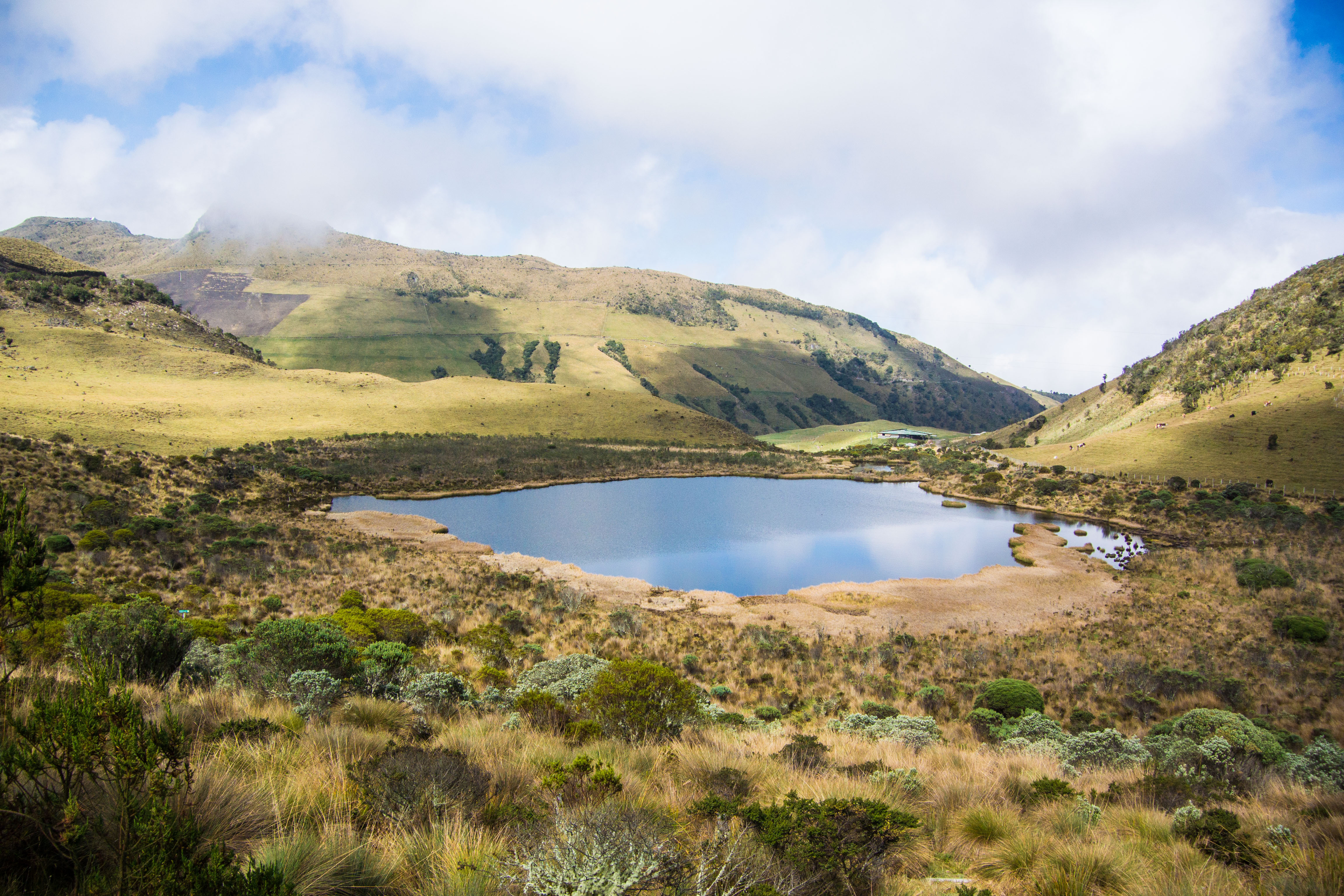 It took us a couple of hours to make our way down from Tinamu and then high up to Los Nevados, a park noted for its high altitude birds. Laura is not a birder but she had taken others up for birding. Once we left the main highway she dropped us off so we could bird the bushes along the road. We didn’t find anything; we will blame it on the cold windy day, but the views were spectacular. We drove along the park road, stopping a few times. We did see distant Andean Ducks, similar to North America’s Ruddy Duck but not much else. At the very top of our drive it was completely clouded in with no relief in sight.