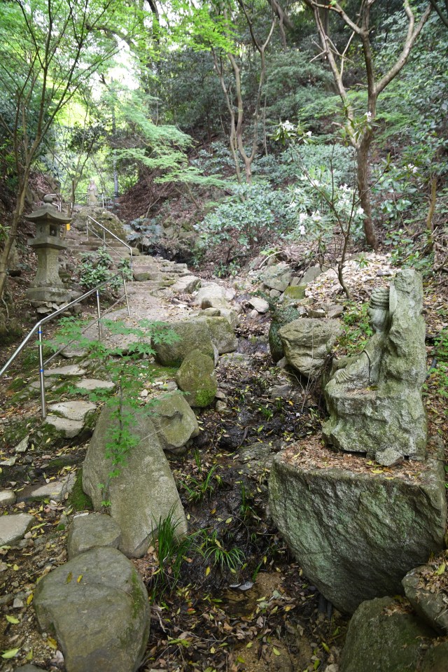 It was not too much out of the way but I spent two hours there and so by the time I made my way back to the henro trail it was afternoon. The trail was an easy broad but steep walkway. I began to realize the penalty for getting a late start. The muggy heat was tough to handle and I paid for it when faced with the rough henro-korogashi trail leading down from the mountain. After some super market oranges at the bottom I began the gradual uphill that would ultimately lead to the next Mountain Temple.