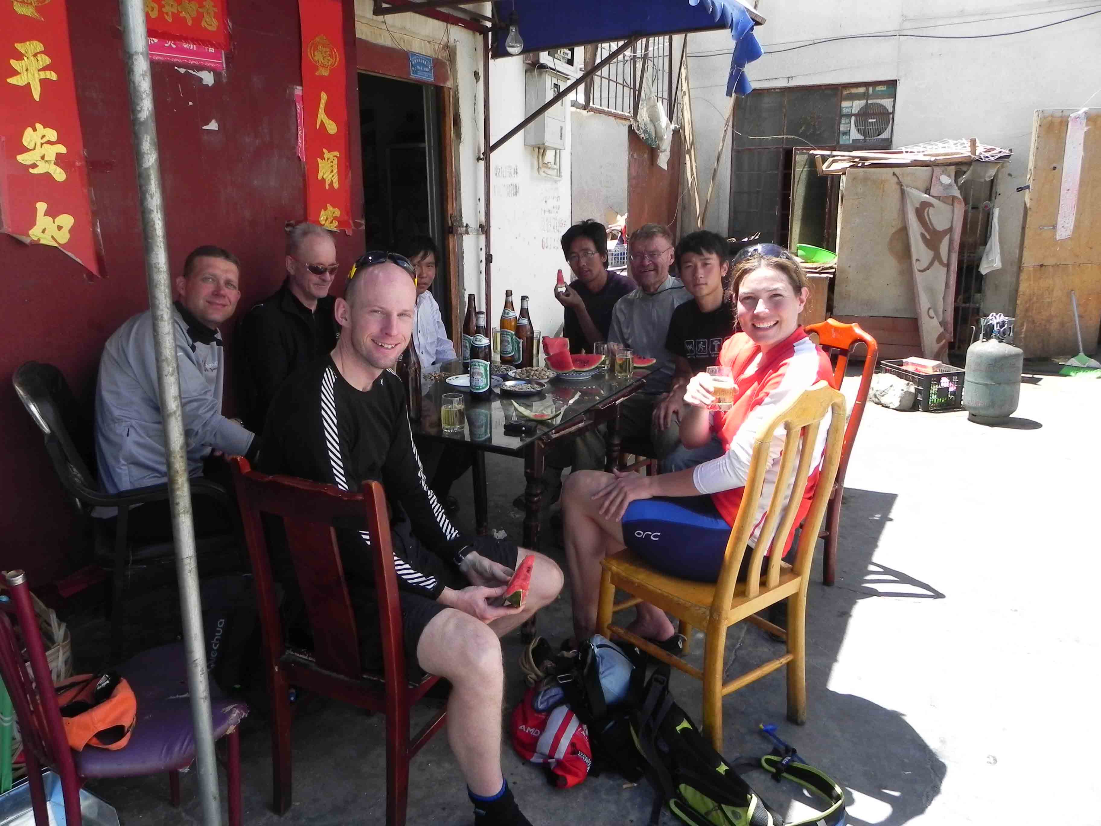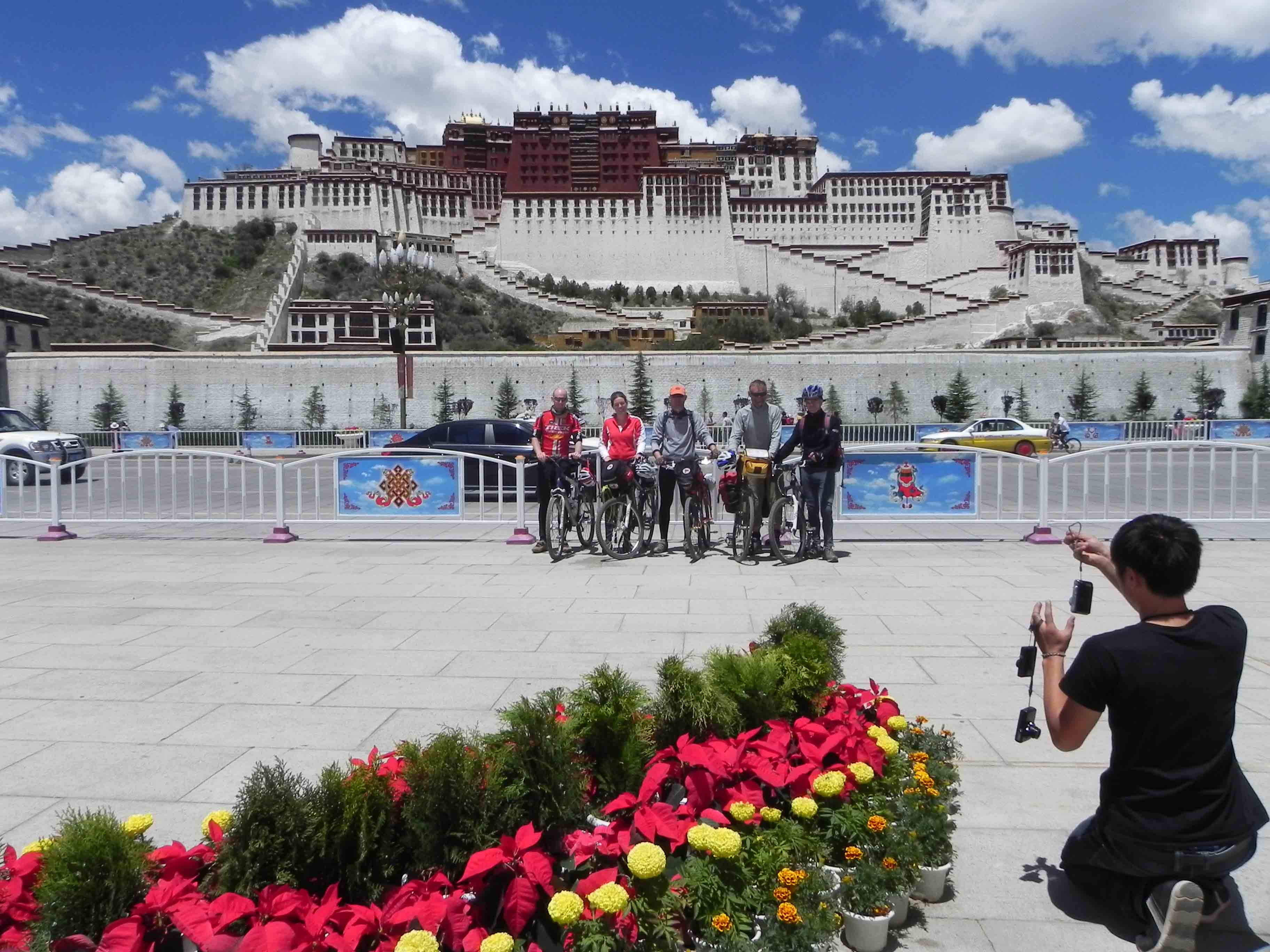 We, my Bike China cycle group, arrived in Lhasa on our bikes about noon. And then, after drinking in the Potala for a while, we had a lovely afternoon sitting in front of Abu’s parent’s neighbourhood