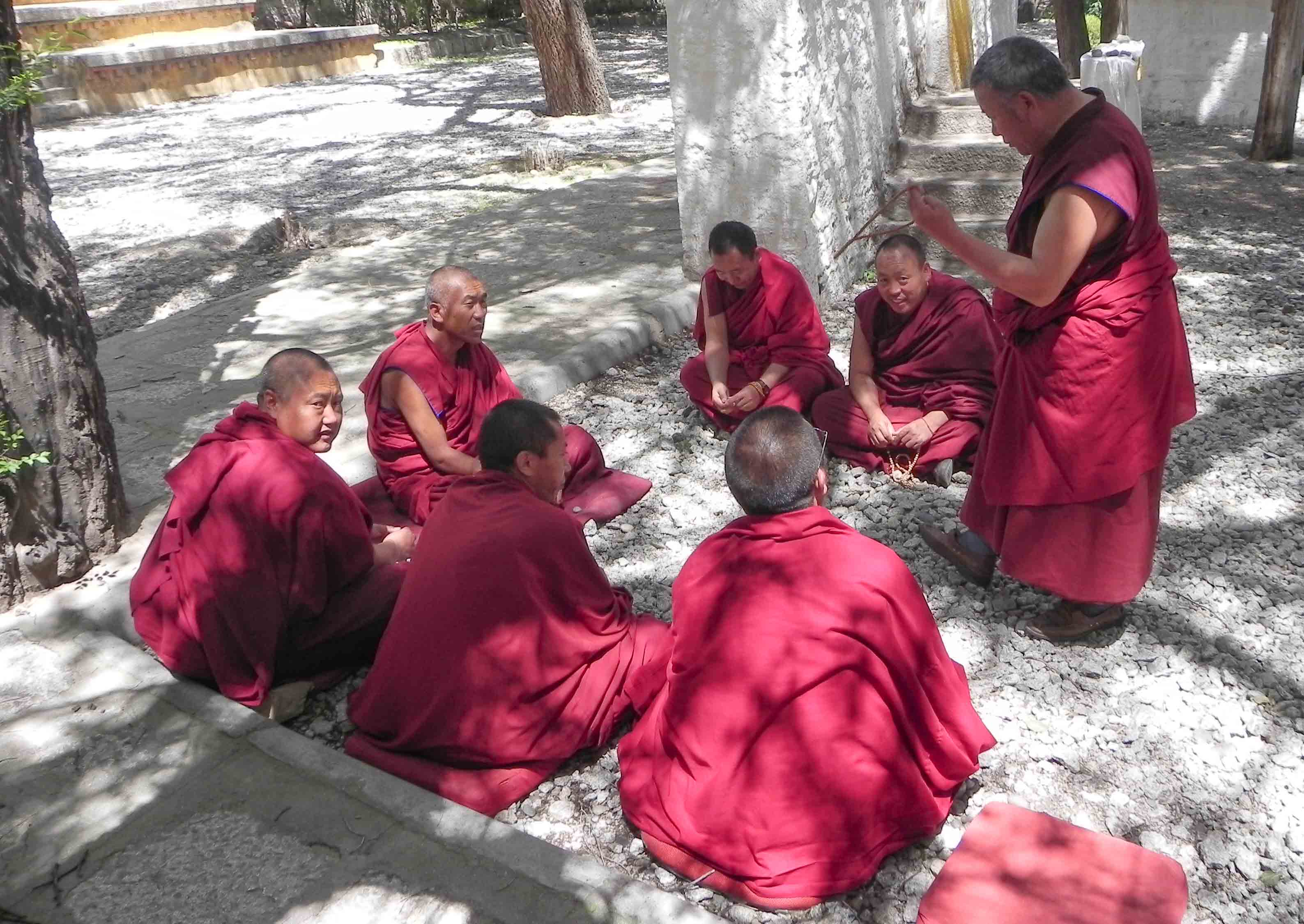 We went to the Sera in the afternoon because in the afternoon the monks are involved in debates. About 40 monks of different hierarchical level pair off and debate issues of relevance. One monk stands, states a question, slaps his hand and points to a sitting monk, who must give a response immediately. The young monks are the most active in slapping their hands and shooting back the answers. We assume the answers have been learned and are part of the dogma. There was a small group of elders whose discussion was very quiet, in comparison, and likely dealt with more weighty matters. It was all very raucous as the monks seemed to greatly enjoy the activity. It is a great tourist attraction.
