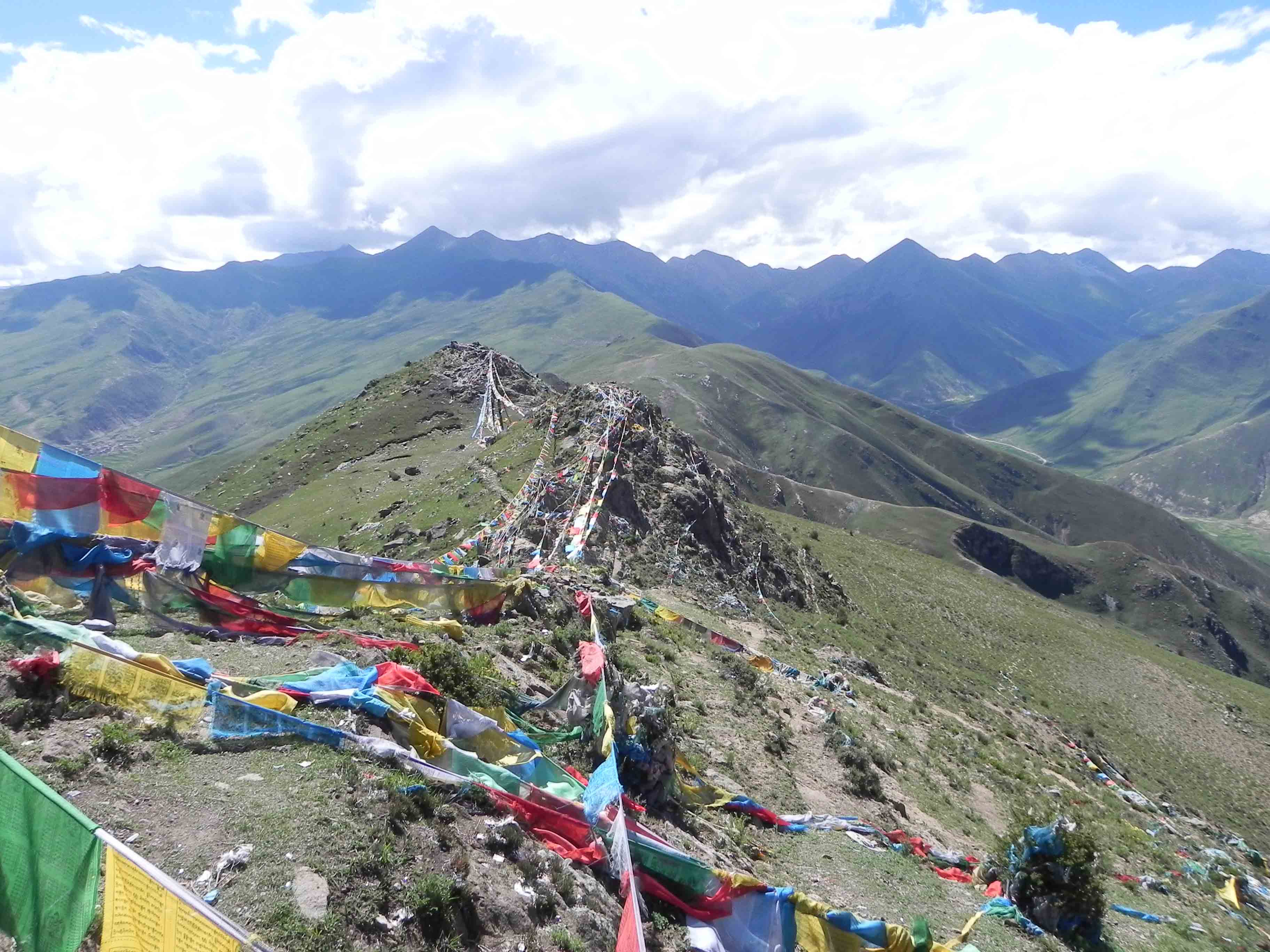 The Ganden is the last of the three great monasteries that we will visit as a group. It is 50 km east of Lhasa, on the road to Kham and possibly 1500 km to Sichuan and Yunnan. There were no security checks and I struggled with my decision, made by now, not to just head on down this road that leads back out to China proper. Paul had wanted to cycle to the Ganden and back, but I really wanted to do the Kora, and so again we all rode in the van. And it was a good thing for me as the last 9 km rose dramatically a good 500 m out of the valley. All, even Hua Dan, were now convinced that doing the Kora would be a good thing, and so we headed up a ridge, festooned as always with prayer flags. As we ascended the ridge, the Ganden, set in a secluded amphitheatre not unlike the setting for Namche Bazaar, continually drew our looks. At the top looking down on the Kyi-chu valley that we had come in on we could see the patchwork fields and the braided river. Looking south, to where the Samye-Ganden trek would come in I was able to pick out Hepu La, the final pass on what could possibly have been my next venture.