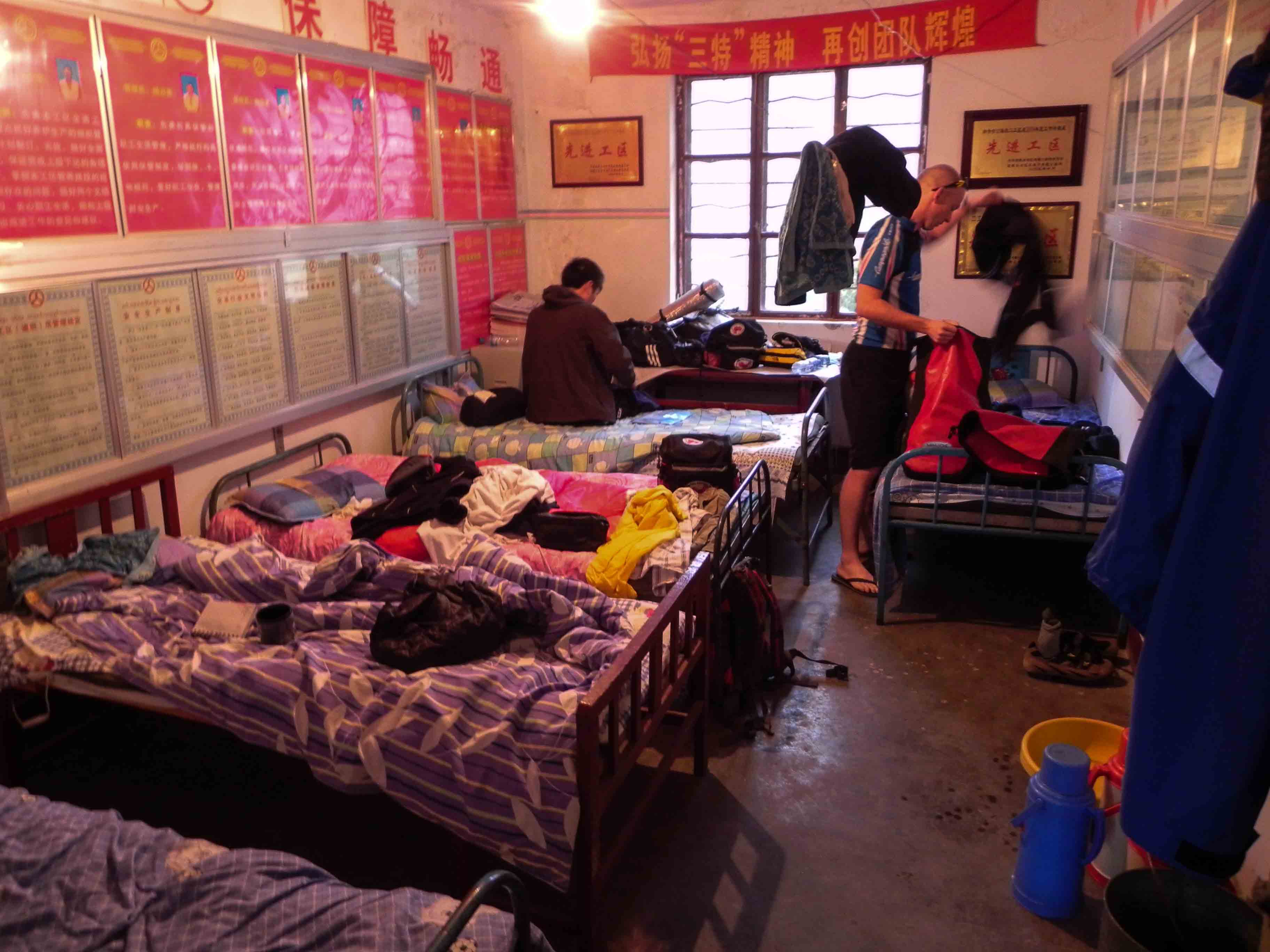 The fast Chinese group also got a room and part of a hall way for the eight of them.  I was very worried about Tina’s group.  The first three arrived and decided to carry on when they could get no room.  The rest arrived and finally Tina.  It had been a long slow climb for her. I talked to her about squeezing in with us, but she indicated no concern, and proceeded to step out into the road to flag down cars for the five remaining riders in her group.  Fifteen minutes, the last to leave, she got into a vehicle that would take her to the next village, 62 km down the road.  I didn’t worry about Pink Tina any more.  I wished I had a Chinese company I could hire her for.